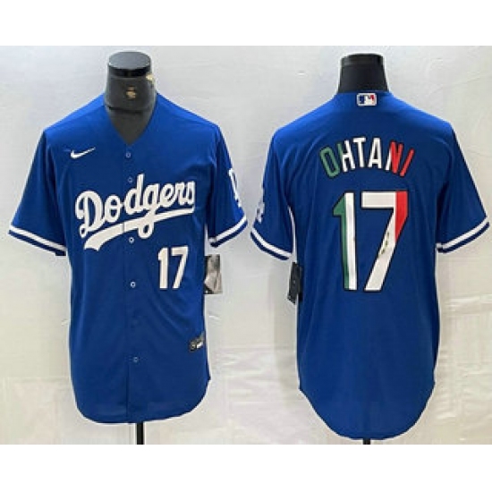 Men's Los Angeles Dodgers #17 Shohei Ohtani Number Mexico Blue Cool Base Stitched Jersey