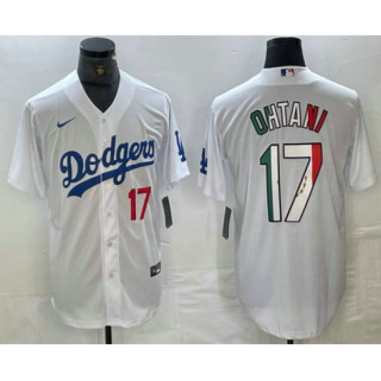 Men's Los Angeles Dodgers #17 Shohei Ohtani Number Mexico White Cool Base Stitched Jersey