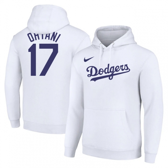 Men's Los Angeles Dodgers #17 Shohei Ohtani White Name & Number Pullover Hoodie