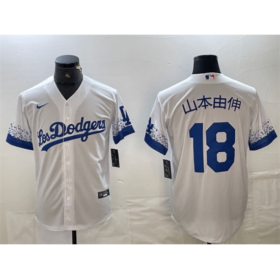 >Men's Los Angeles Dodgers #18 山本由伸 White City Connect Cool Base Stitched Jersey