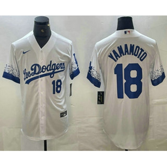 >Men's Los Angeles Dodgers #18 Yoshinobu Yamamoto Number White 2021 City Connect Cool Base Stitched Jerseys