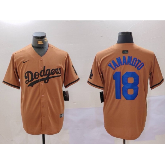 Men's Los Angeles Dodgers #18 Yoshinobu Yamamoto Olive Cool Base Limited Stitched Jersey