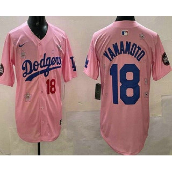 Men's Los Angeles Dodgers #18 Yoshinobu Yamamoto Pink 2025 Tokyo Series Limited Jersey