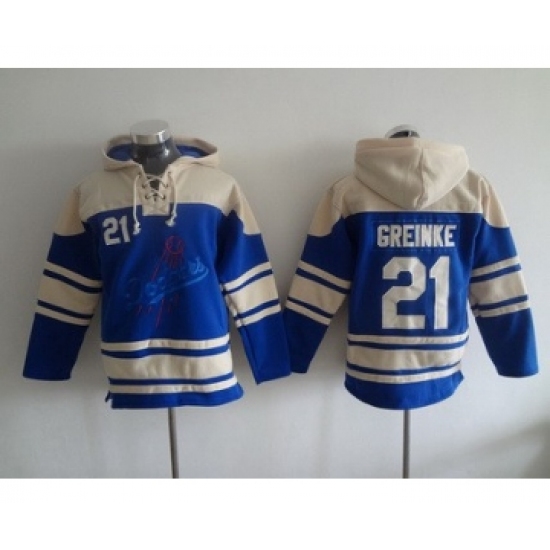 Men's Los Angeles Dodgers #21 Zack Greinke Blue Alternate MLB Hoodie