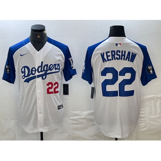 Men's Los Angeles Dodgers #22 Clayton Kershaw White Blue Fashion Stitched Cool Base Limited Jersey
