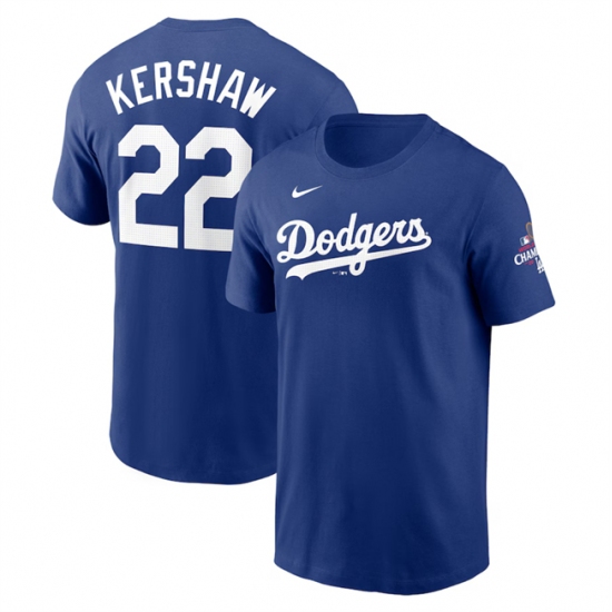 >Men's Los Angeles Dodgers #22 Clayton Kershaw Royal 2024 World Series Champions Name & Number T-Shirt