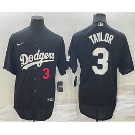 Men's Los Angeles Dodgers #3 Chris Taylor Number Black Stitched MLB Cool Base Nike Jersey