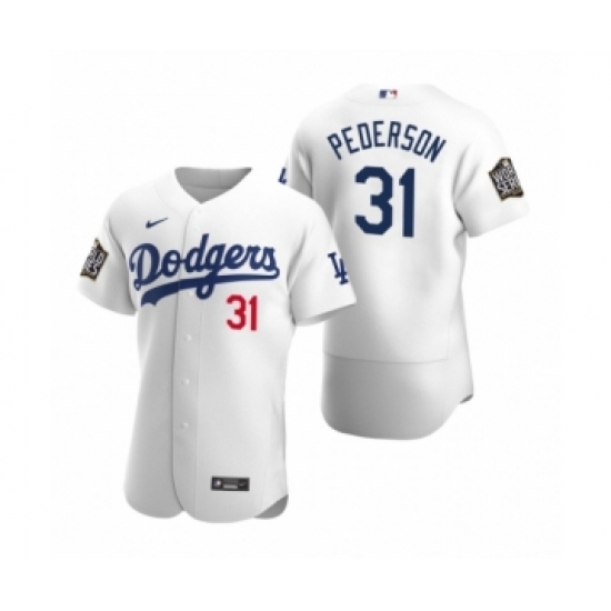 Men's Los Angeles Dodgers #31 Joc Pederson Nike White 2020 World Series Authentic Jersey