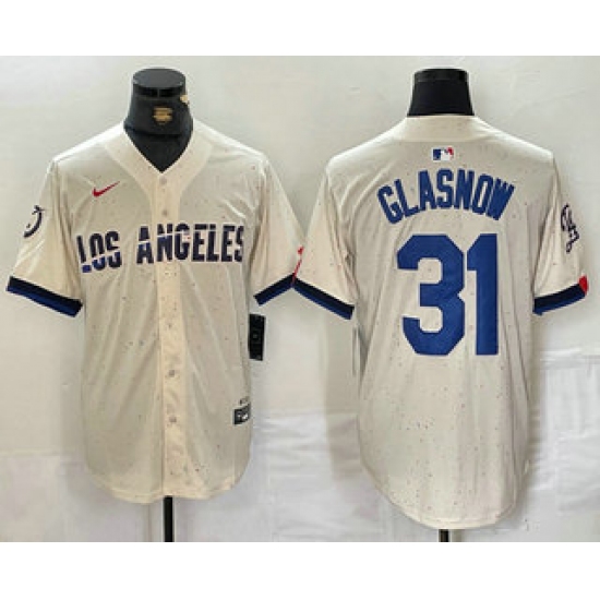 Men's Los Angeles Dodgers #31 Tyler Glasnow Cream Blue 2024 City Connect Limited Stitched Jersey