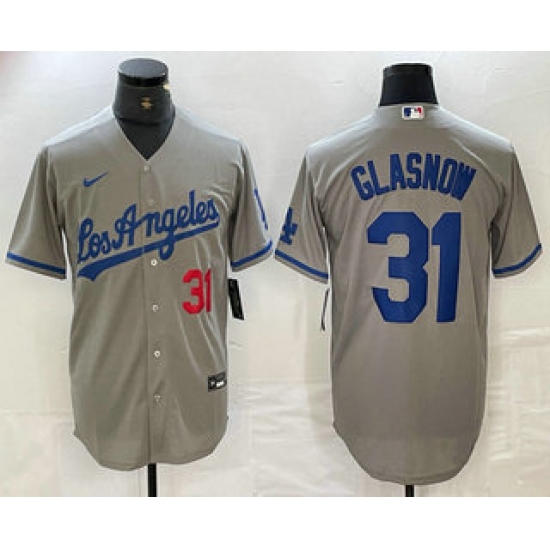 Men's Los Angeles Dodgers #31 Tyler Glasnow Gray Alternate Player Number Team Logo Cool Base Jerseys