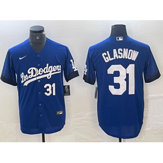 Men's Los Angeles Dodgers #31 Tyler Glasnow Number Blue 2021 City Connect Cool Base Stitched Jerseys