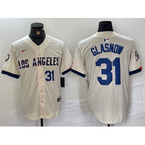 Men's Los Angeles Dodgers #31 Tyler Glasnow Number Cream Blue 2024 City Connect Limited Stitched Jerseys