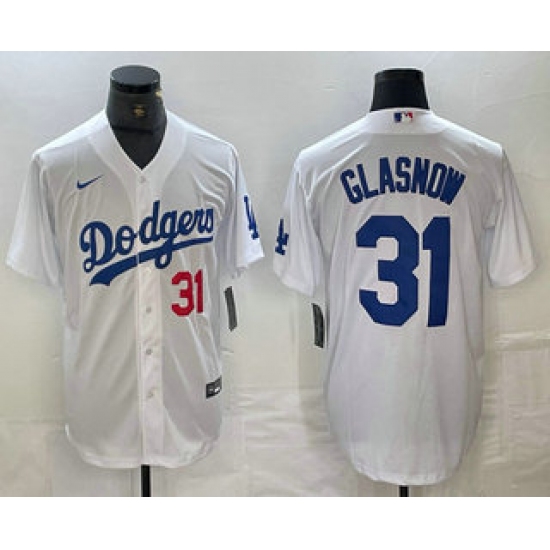Men's Los Angeles Dodgers #31 Tyler Glasnow Number White Stitched Cool Base Nike Jerseys