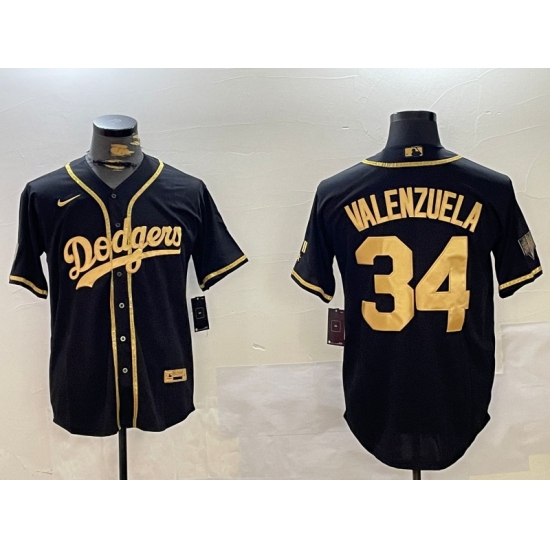 Men's Los Angeles Dodgers #34 Fernando Valenzuela Black Authentic Collection Stitched MLB Jersey
