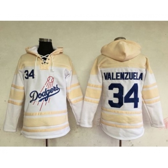 Men's Los Angeles Dodgers #34 Fernando Valenzuela Retired White Baseball MLB Hoodie