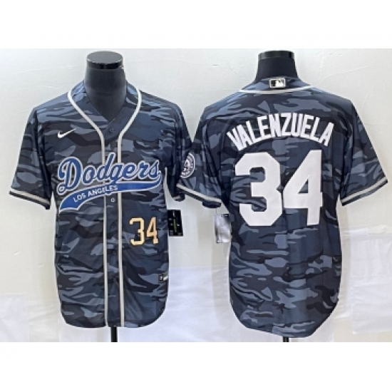 Men's Los Angeles Dodgers #34 Toro Valenzuela Number Gray Camo Cool Base Stitched Baseball Jersey