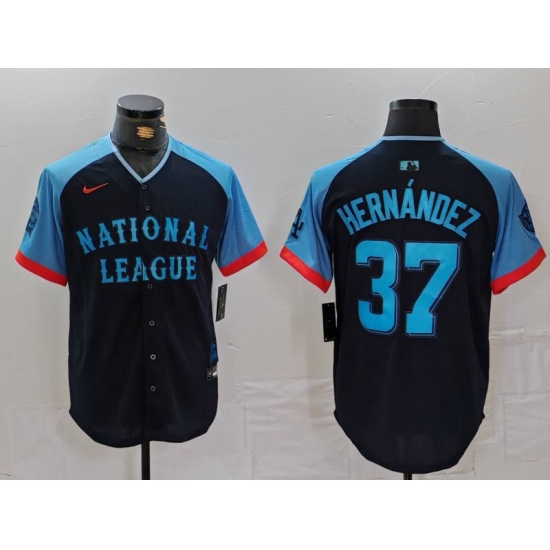 >Men's Los Angeles Dodgers #37 Teoscar Hernandez Navy 2024 All Star Limited Stitched Jersey