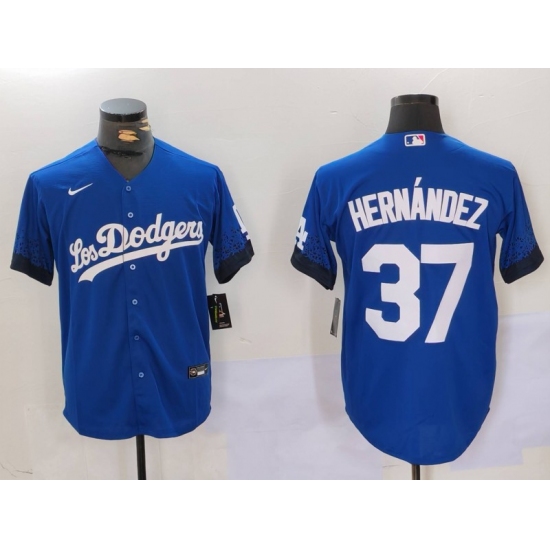 >Men's Los Angeles Dodgers #37 Teoscar Hernández Blue Cool Base Stitched Baseball Jersey