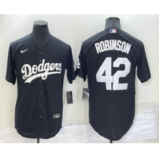 Men's Los Angeles Dodgers #42 Jackie Robinson Black Turn Back The Clock Stitched Cool Base Jersey