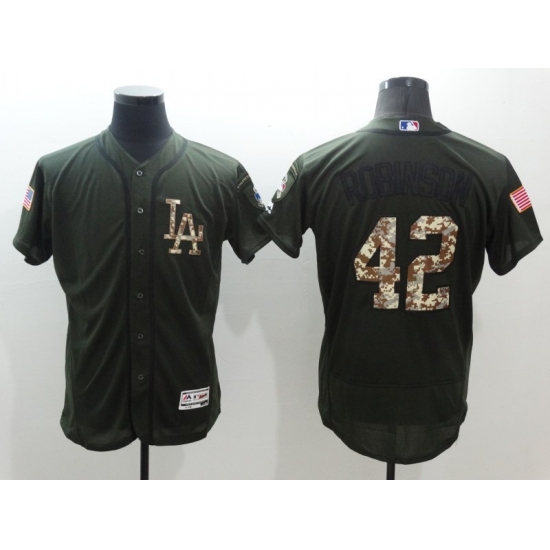 Men's Los Angeles Dodgers #42 Jackie Robinson Green Salute to Service Jersey