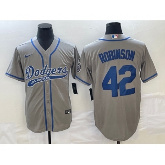 Men's Los Angeles Dodgers #42 Jackie Robinson Grey Cool Base Stitched Baseball Jersey1