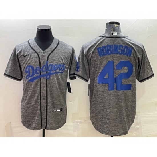 Men's Los Angeles Dodgers #42 Jackie Robinson Grey Gridiron Cool Base Stitched Baseball Jersey