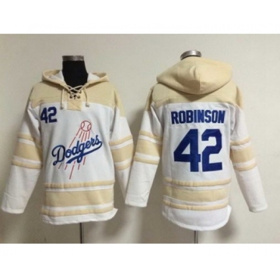 Men's Los Angeles Dodgers #42 Jackie Robinson Home White Hoodie