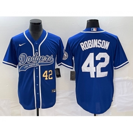 Men's Los Angeles Dodgers #42 Jackie Robinson Number Blue Cool Base Stitched Baseball Jersey