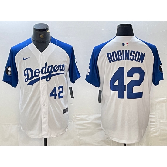 Mens Los Angeles Dodgers #42 Jackie Robinson Number White Blue Fashion Stitched Cool Base Limited Jersey