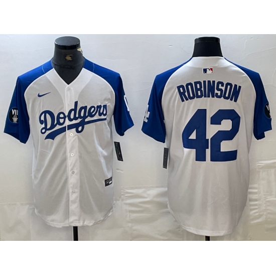 Men's Los Angeles Dodgers #42 Jackie Robinson White Blue Fashion Stitched Cool Base Limited Jerseys