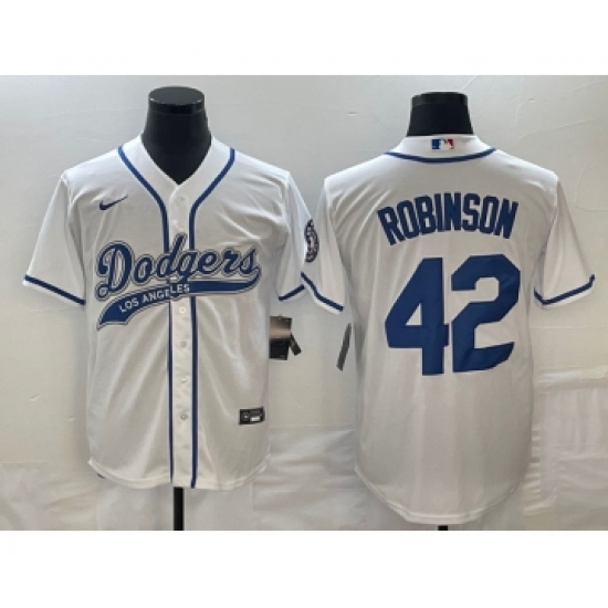 Men's Los Angeles Dodgers #42 Jackie Robinson White Blue Fashion Stitched Cool Base Limited Jersey