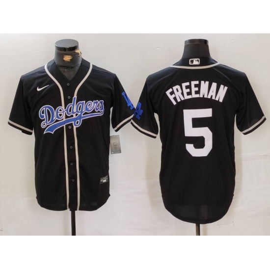 >Men's Los Angeles Dodgers #5 Freddie Freeman Black Cool Base With Stitched Baseball Jersey