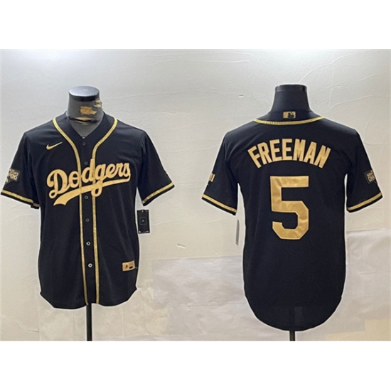 Men's Los Angeles Dodgers #5 Freddie Freeman Black Gold 2024 World Series Champions Limited Stitched Baseball Jersey