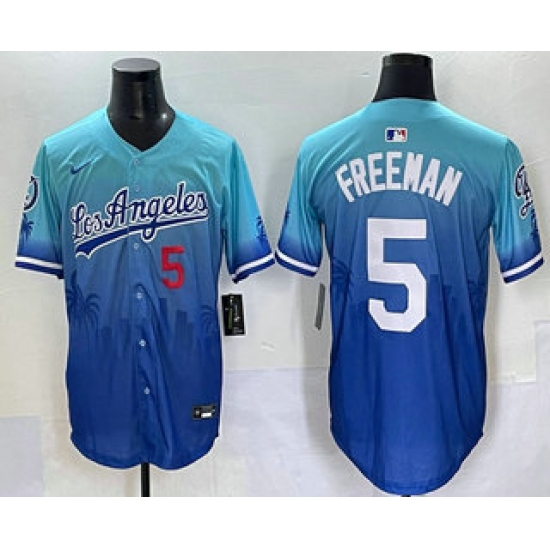Men's Los Angeles Dodgers #5 Freddie Freeman Blue 2025 City Connect Limited Stitched Jersey