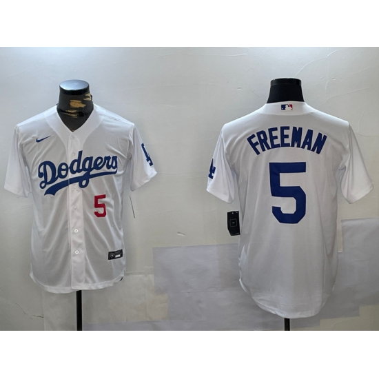 Men's Los Angeles Dodgers #5 Freddie Freeman Number White Cool Base Jersey