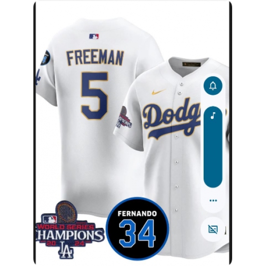>Men's Los Angeles Dodgers #5 Freddie Freeman White 2024 World Series Fernando Memorial Limited Stitched Baseball Jersey