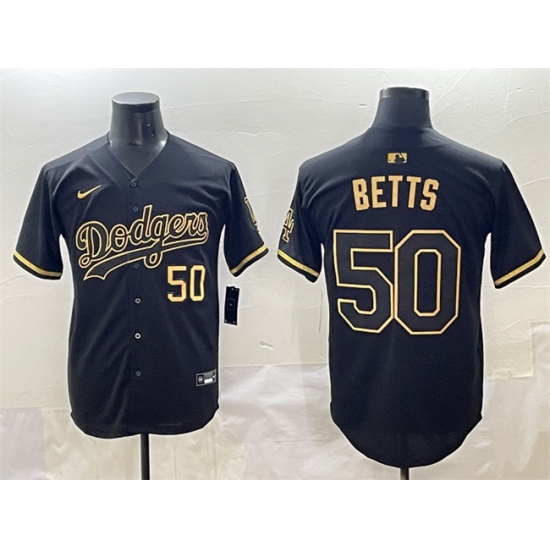 >Men's Los Angeles Dodgers #50 Mookie Betts Black Gold Limited Stitched Jersey