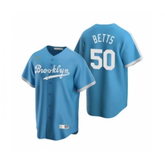 Men's Los Angeles Dodgers #50 Mookie Betts Nike Light Blue Cooperstown Collection Alternate Jersey