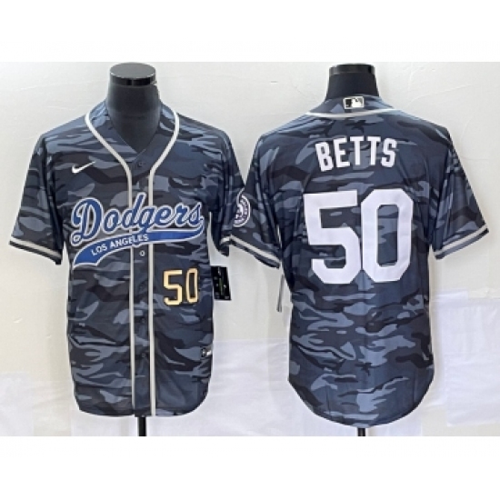 Men's Los Angeles Dodgers #50 Mookie Betts Number Gray Camo Cool Base Stitched Baseball Jersey