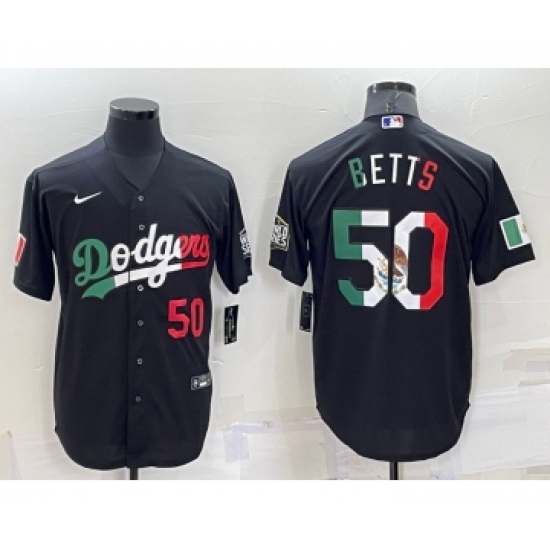 Men's Los Angeles Dodgers #50 Mookie Betts Number Mexico Black Cool Base Stitched Baseball Jersey