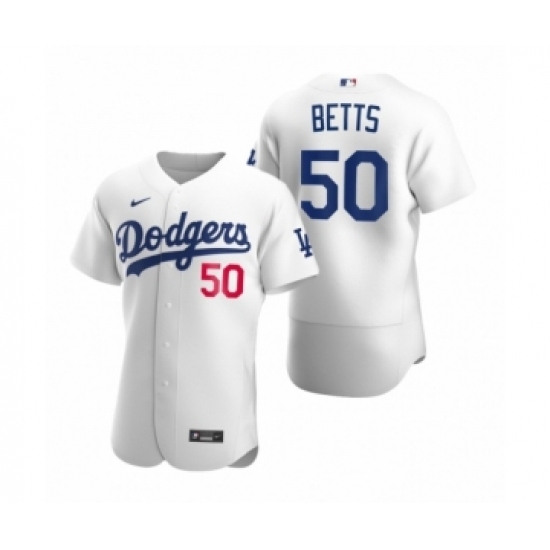 >Men's Los Angeles Dodgers #50 Mookie Betts White Authentic 2020 Home Jersey