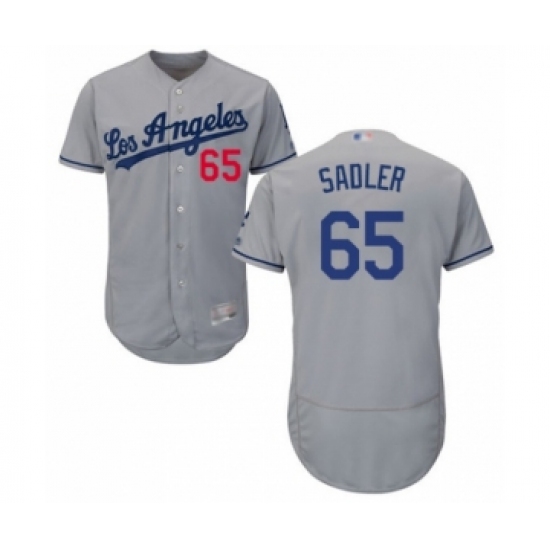 Men's Los Angeles Dodgers #65 Casey Sadler Grey Road Flex Base Authentic Collection Baseball Player Jersey