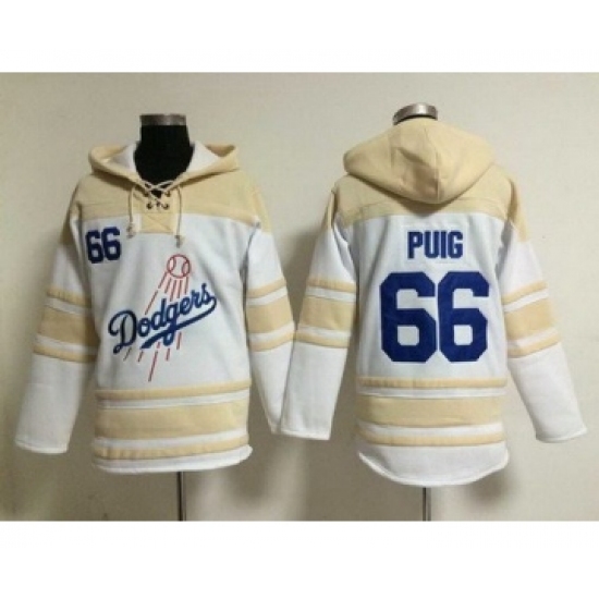 Men's Los Angeles Dodgers #66 Yasiel Puig Home White Hoodie