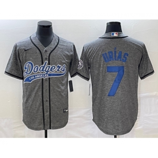 Men's Los Angeles Dodgers #7 Julio Urias Grey Gridiron Cool Base Stitched Baseball Jersey