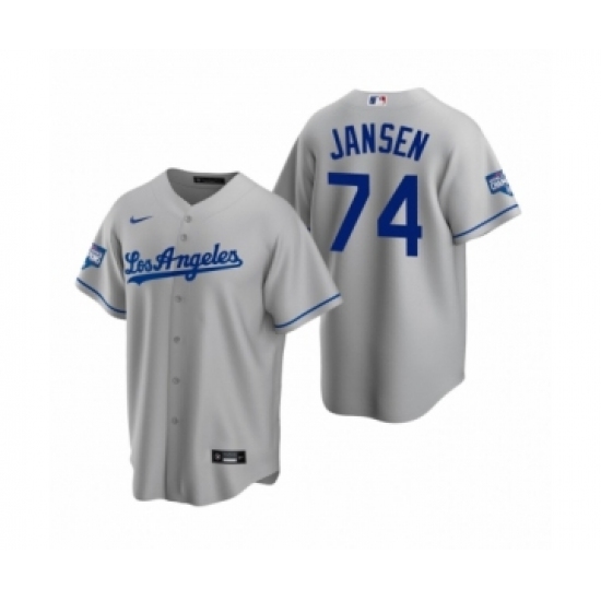 Men's Los Angeles Dodgers #74 Kenley Jansen Gray 2020 World Series Champions Road Replica Jersey