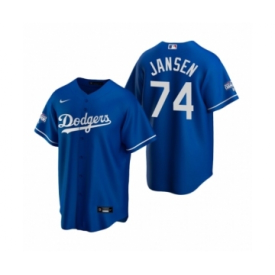 Men's Los Angeles Dodgers #74 Kenley Jansen Royal 2020 World Series Champions Replica Jersey