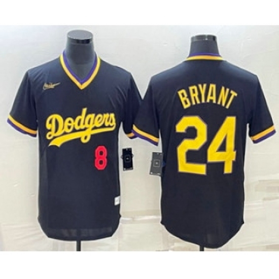 Men's Los Angeles Dodgers Front #8 Back #24 Kobe Bryant Black 'Mamba' Throwback With KB Cool Base Stitched Jersey