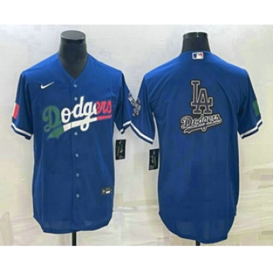 Men's Los Angeles Dodgers Big Logo Navy Blue Pinstripe Stitched MLB Cool Base Nike Jersey1