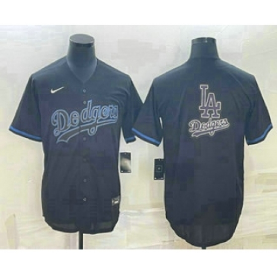 >Men's Los Angeles Dodgers Black Team Big Logo Cool Base Stitched Baseball Jersey1