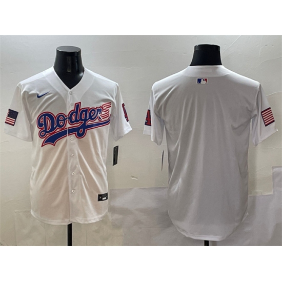 Men's Los Angeles Dodgers Blank White With American Flag Limited Stitched Baseball Jersey